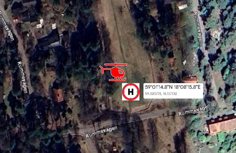 SOS - Helikopterlandningsplats 59°01'14.8"N 18°08'15.8"E